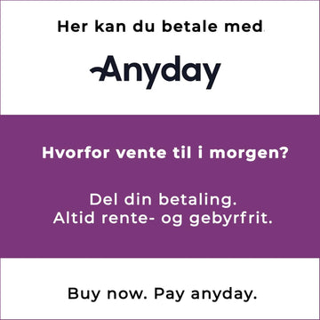 Vi betaler som forretning et transaktionsgebyr til Anyday, for at sikre du altid kan købe rente- og gebyrfrit.