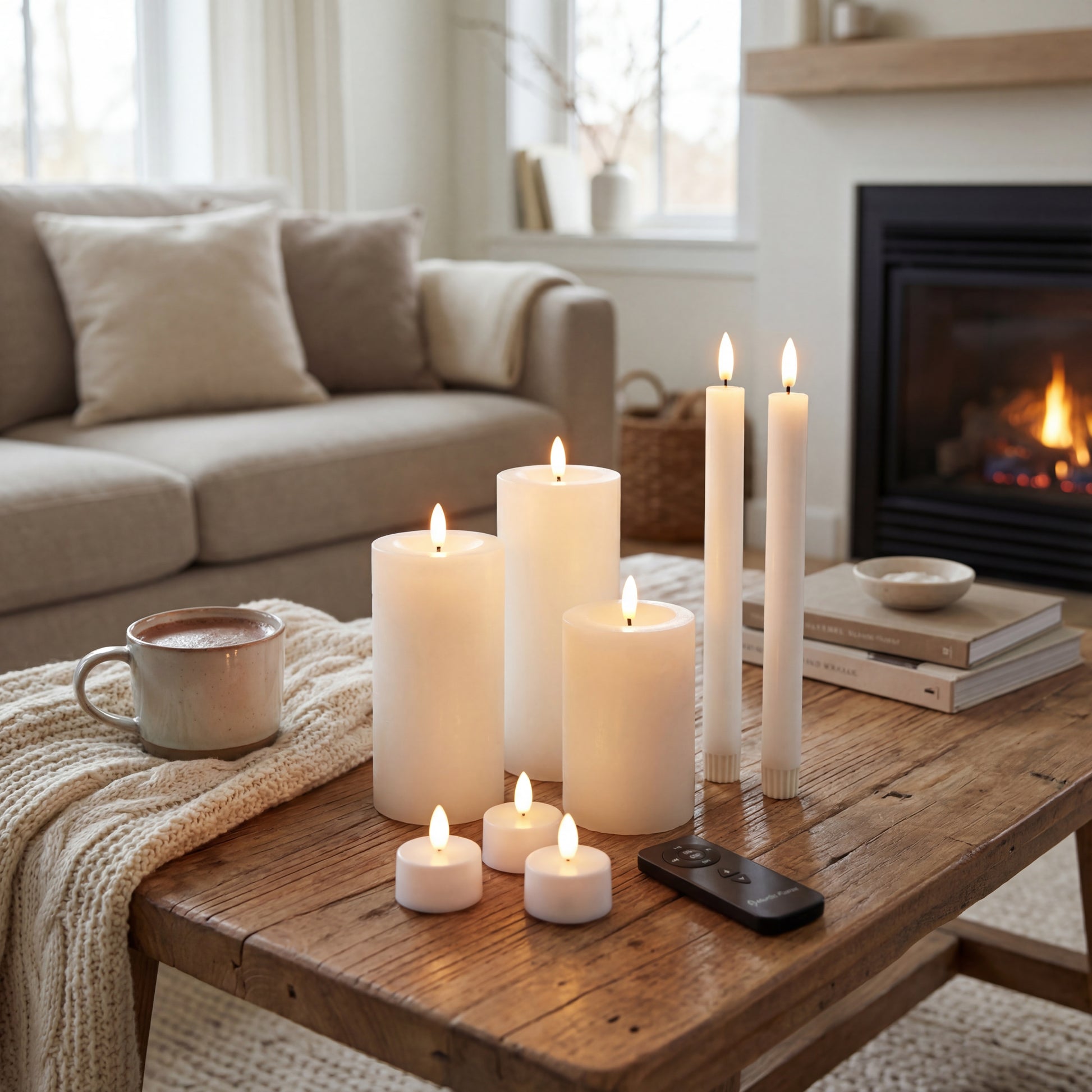 LED Lys 10-Pak Hvid – Premium 3D Flamme, Timer & Fjernbetjening | Nordic Flame