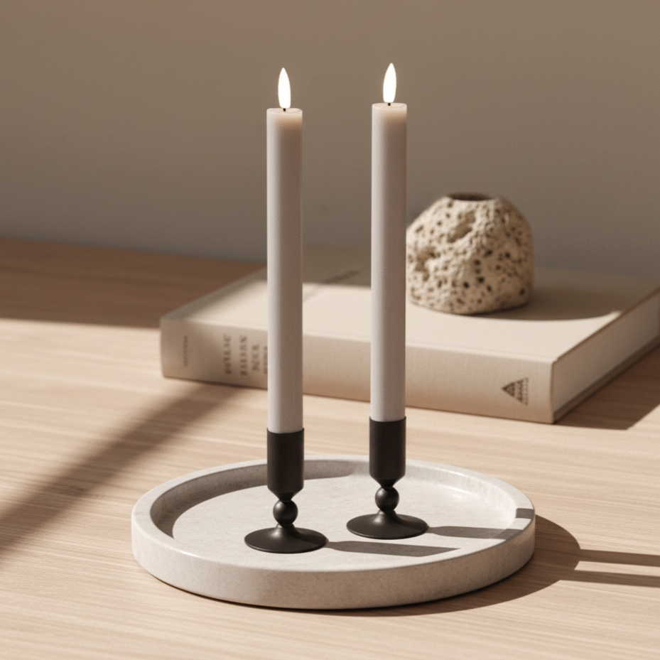 Skab en hyggelig atmosfære med disse elegante LED kronelys i klassisk Grå. Lysene har en naturtro 3D-flamme, der flakker blidt og giver et varmt og stemningsfuldt skær – helt uden sod, røg eller brandfare.