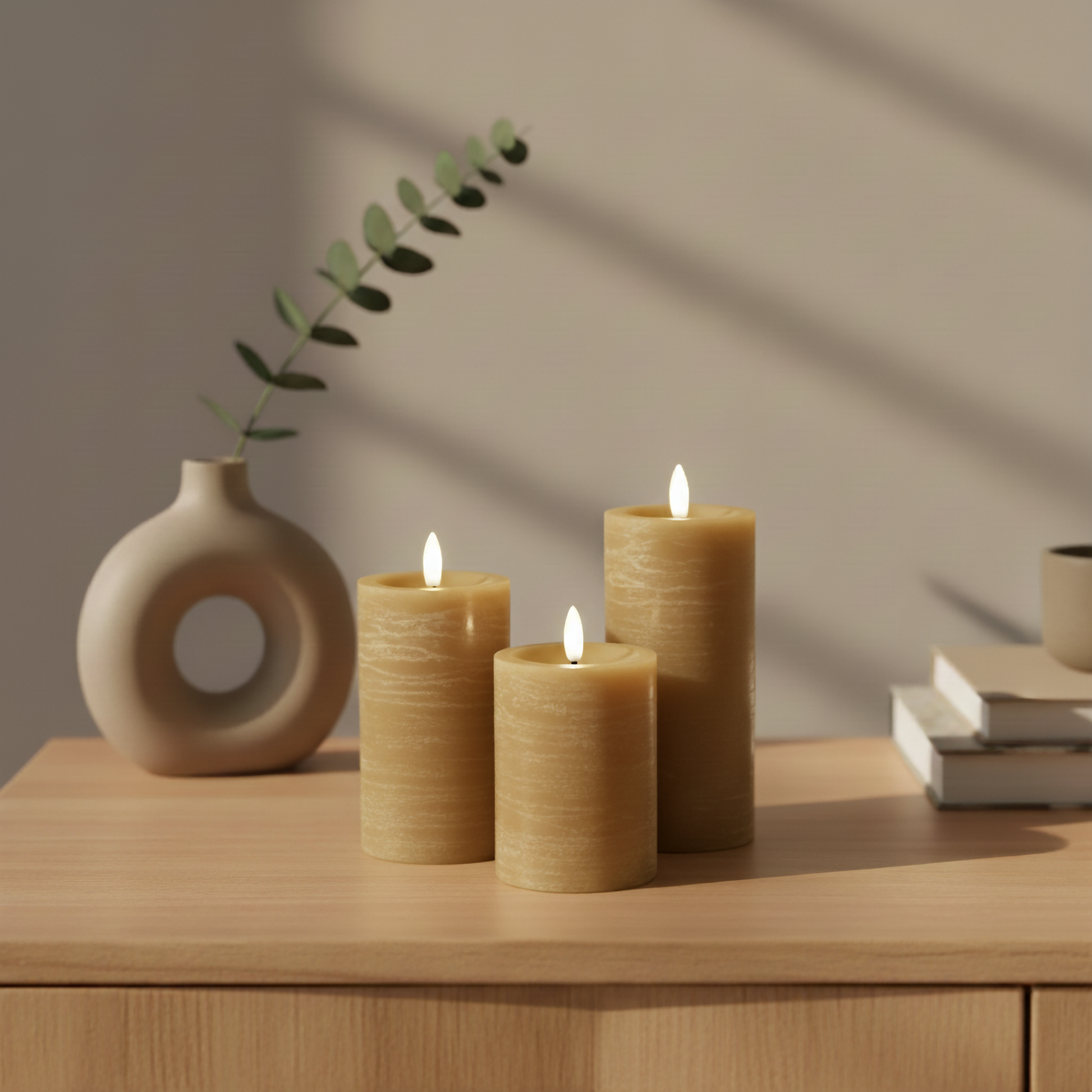 LED bloklys til indendørs brug – 3-pak i karry farve