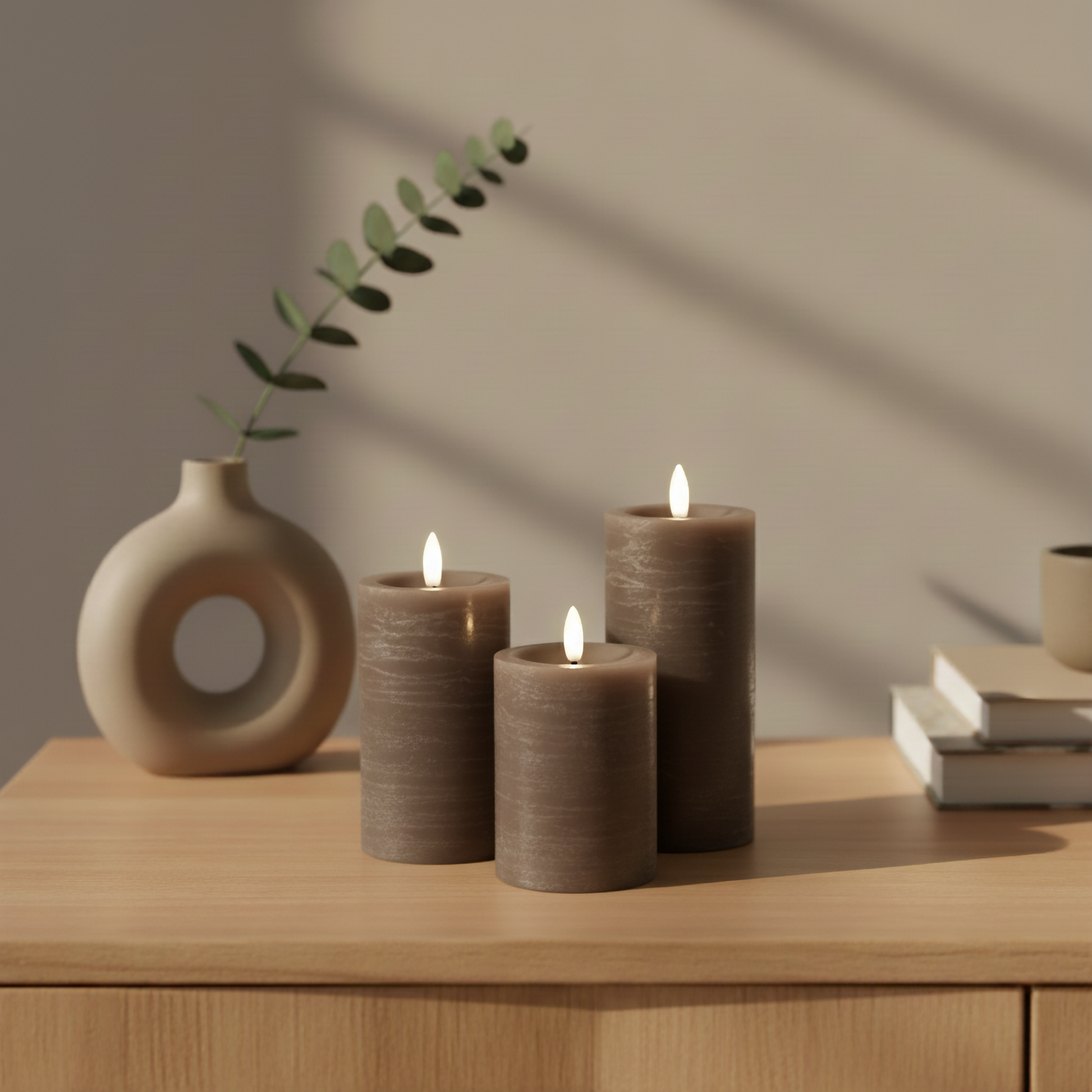 LED bloklys til indendørs brug – 3-pak i Mokka farve
