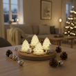 Skab en varm og fortryllende julestemning i dit hjem med disse elegante hvide LED-juletræer. De små træer passer perfekt som bordpynt, i vindueskarmen, på en bakke med julepynt eller som en del af en smuk hyggedekoration i stuen. Med deres bløde og rolige LED-flamme får du den samme stemning som ægte lys – bare uden brandfare, røg eller sod.