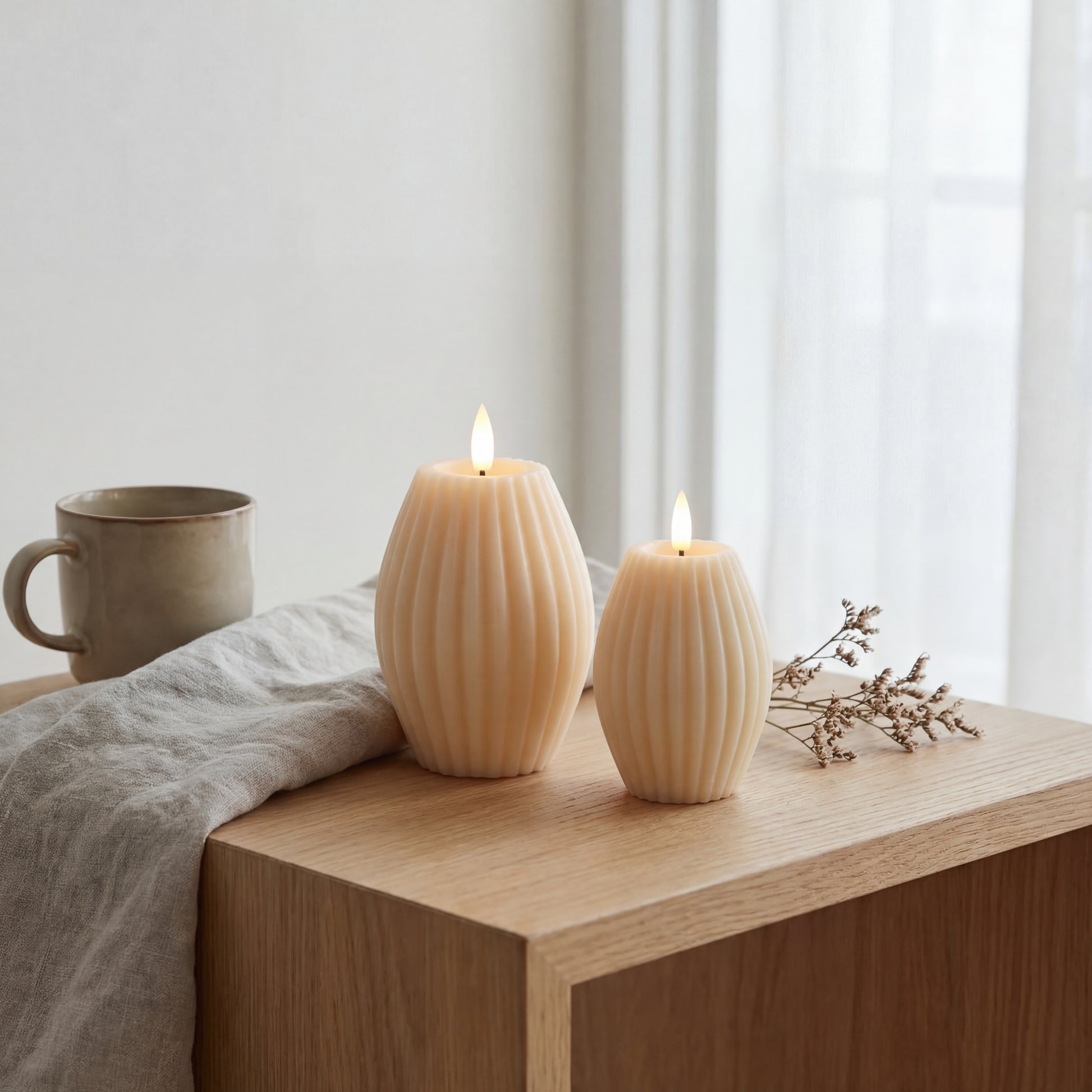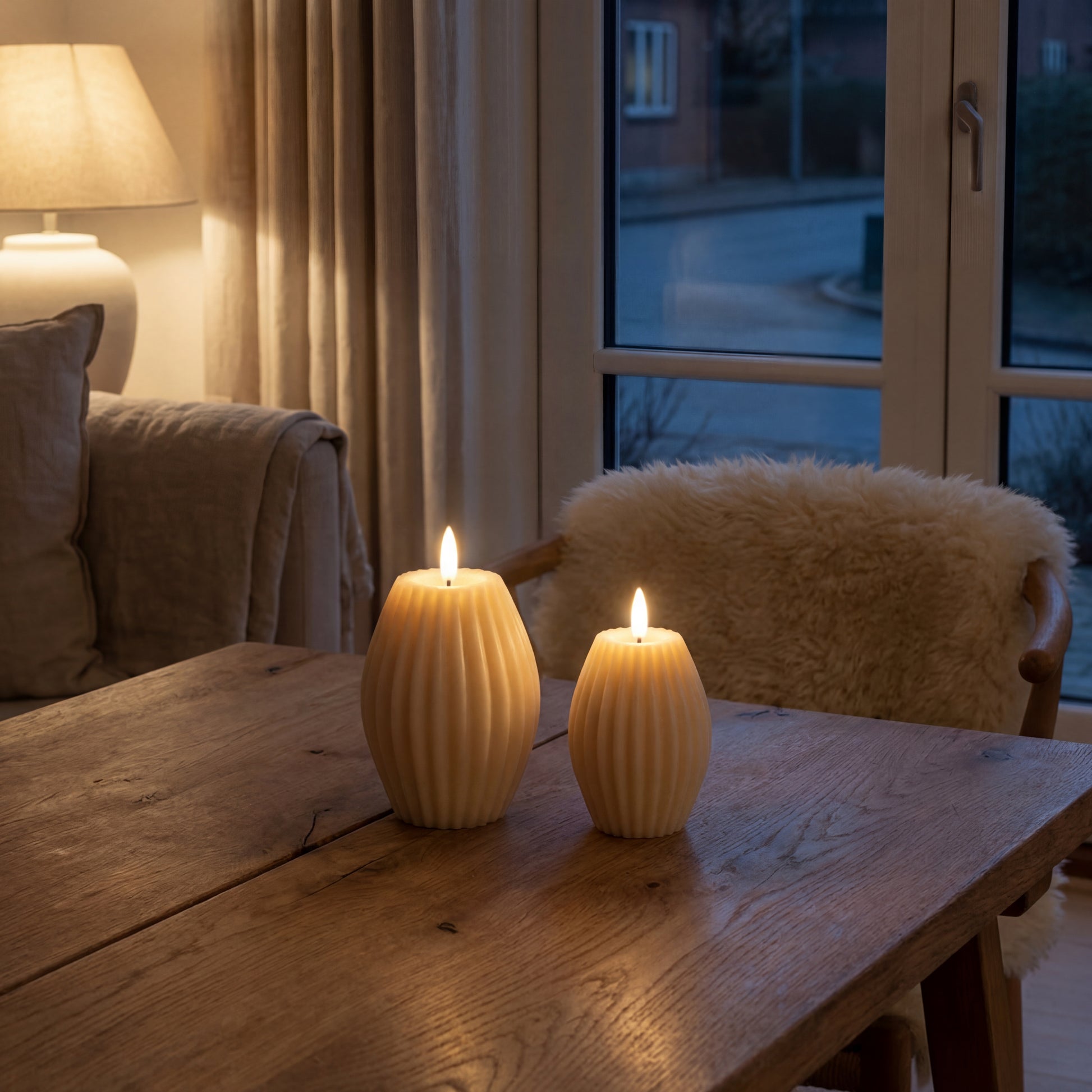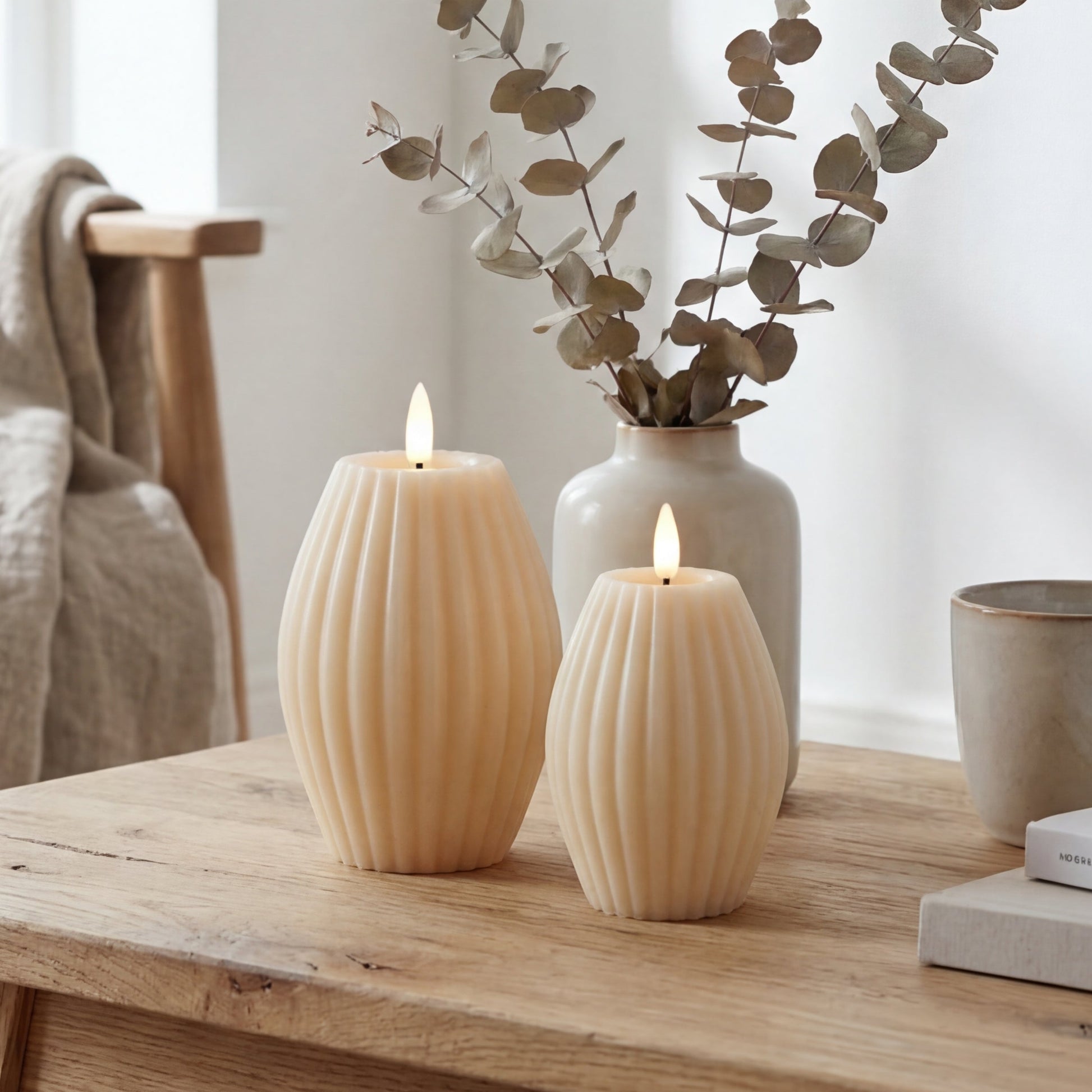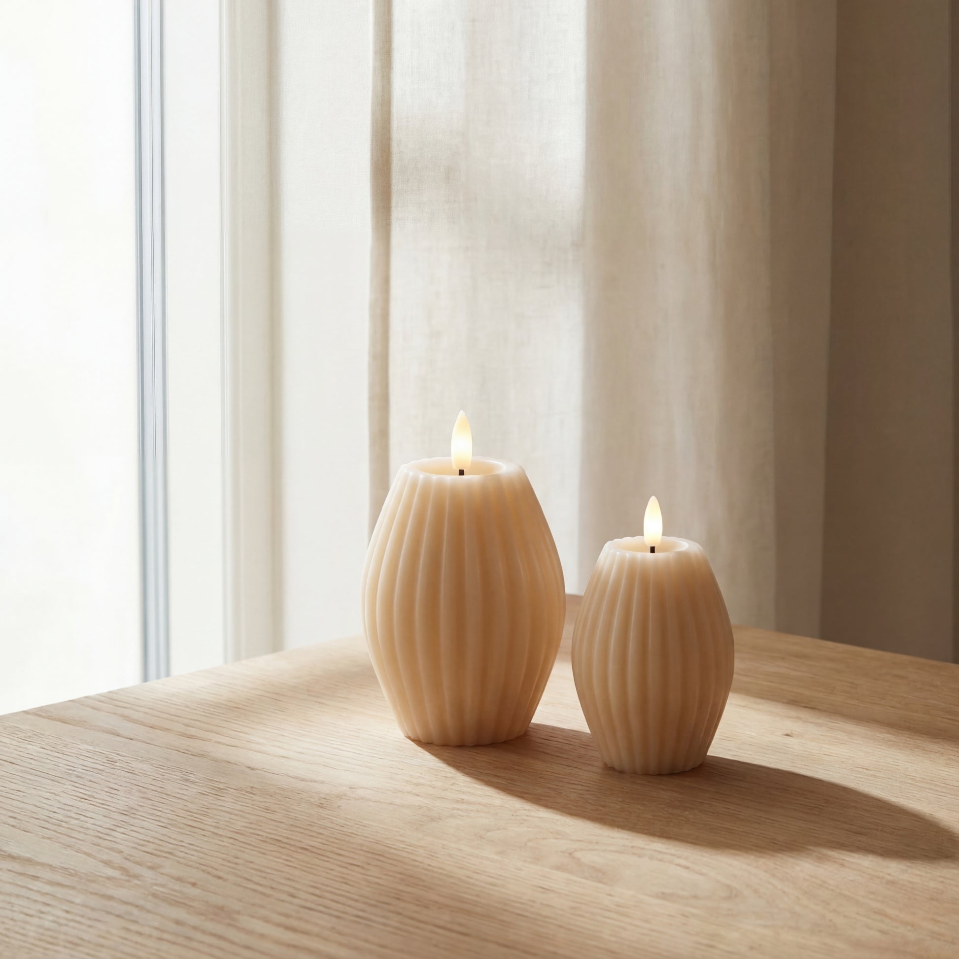 LED Bloklys i Ægte Voks med Rillemønster – 2 stk. Giftbox | Delight - Cream
