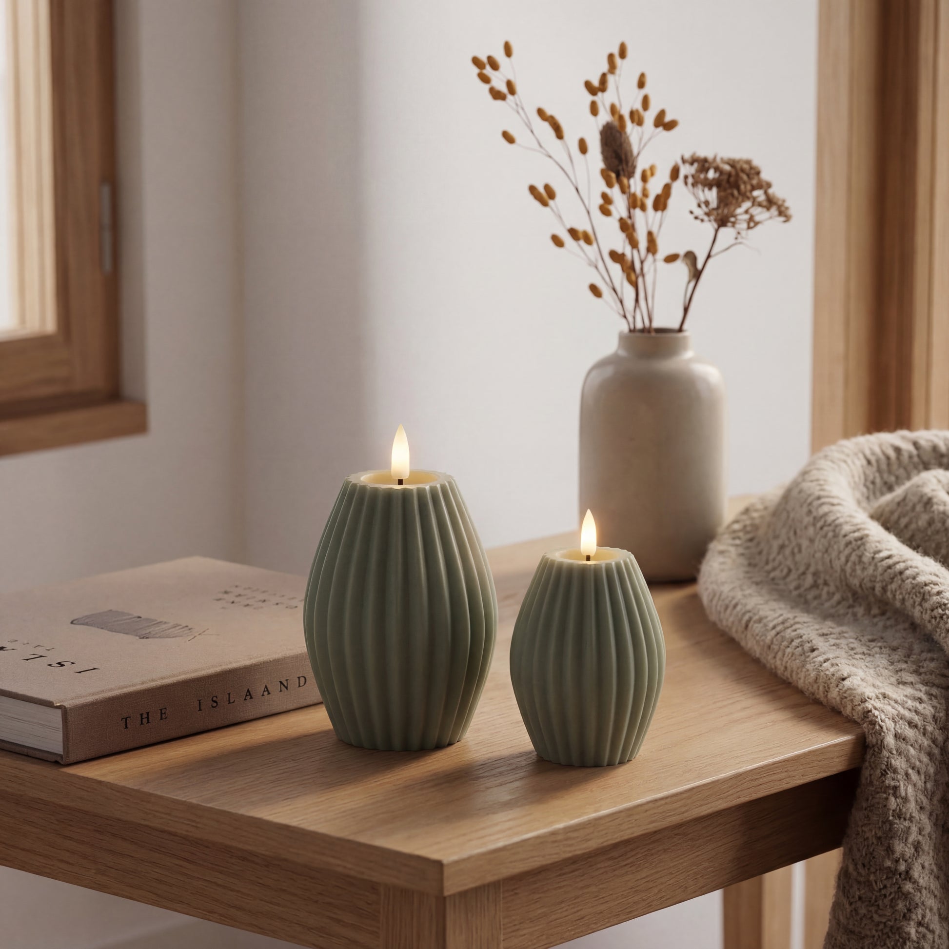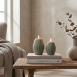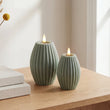 LED Bloklys i Ægte Voks med Rillemønster – 2 stk. Giftbox | Delight - Salvie grøn