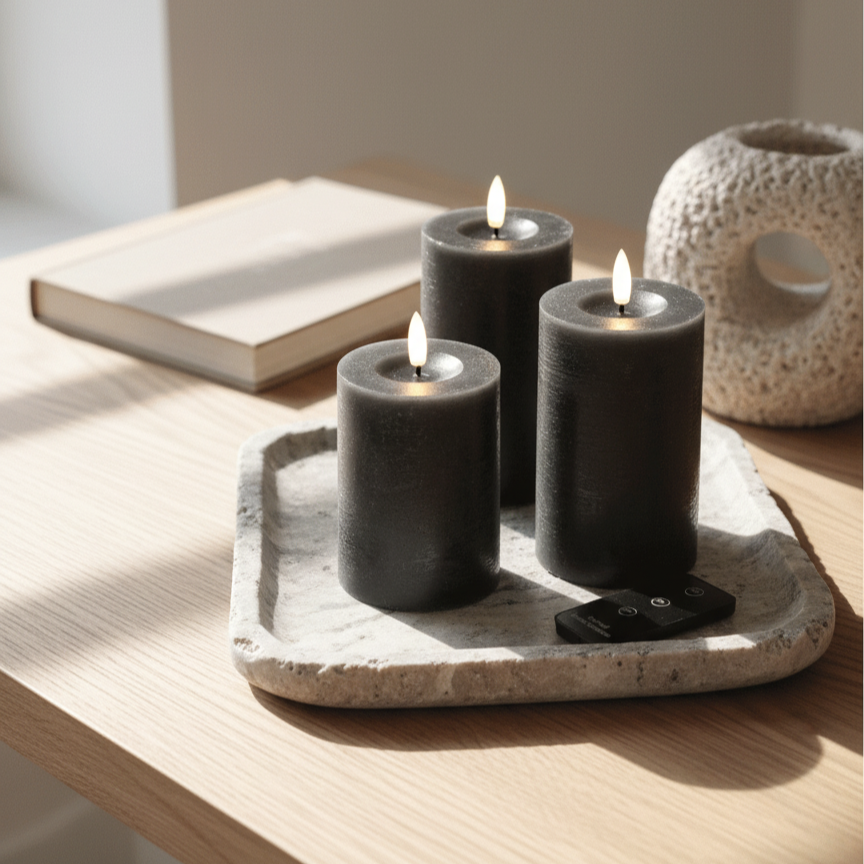 LED-bloklyssæt med 3 bloklys & fjernbetjening - Petroleumsfarvet