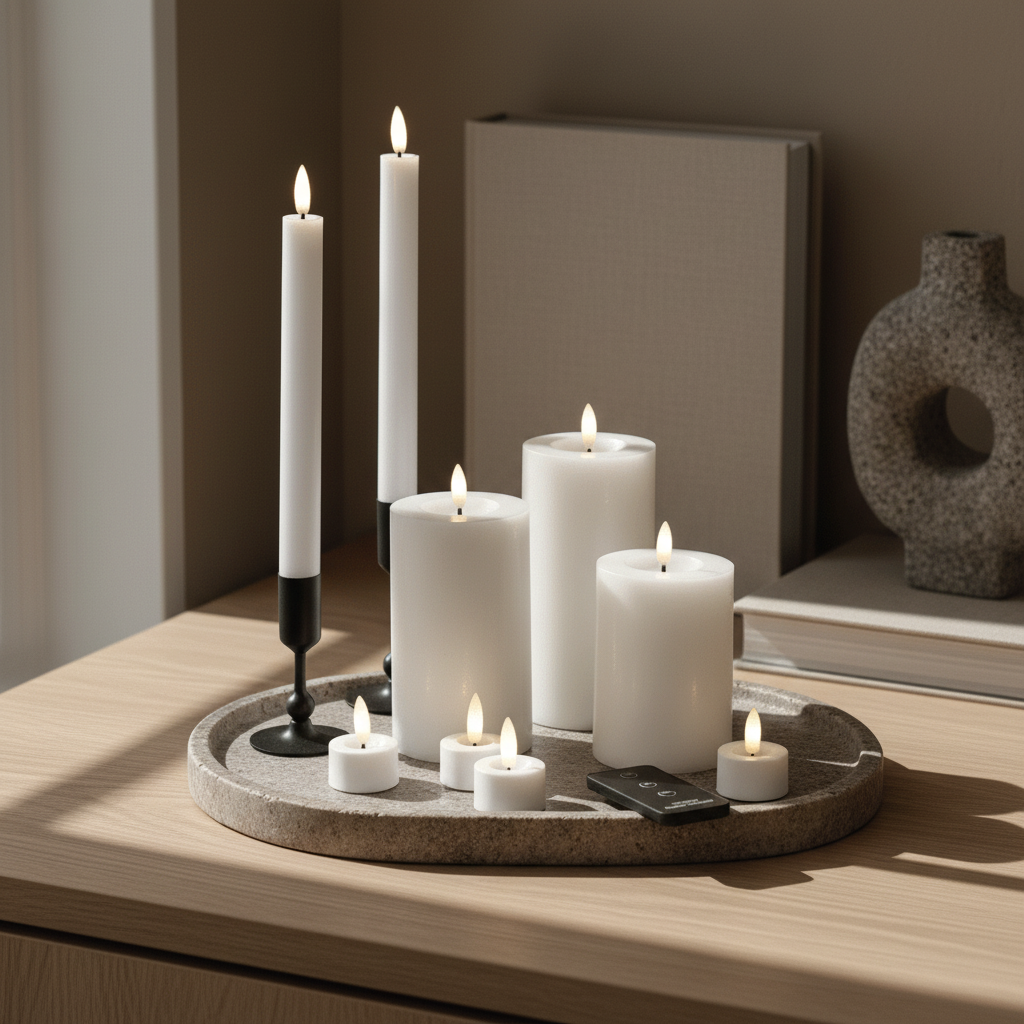 - 4 fyrfadslys (plastik) – inklusive batterier, klar til brug
