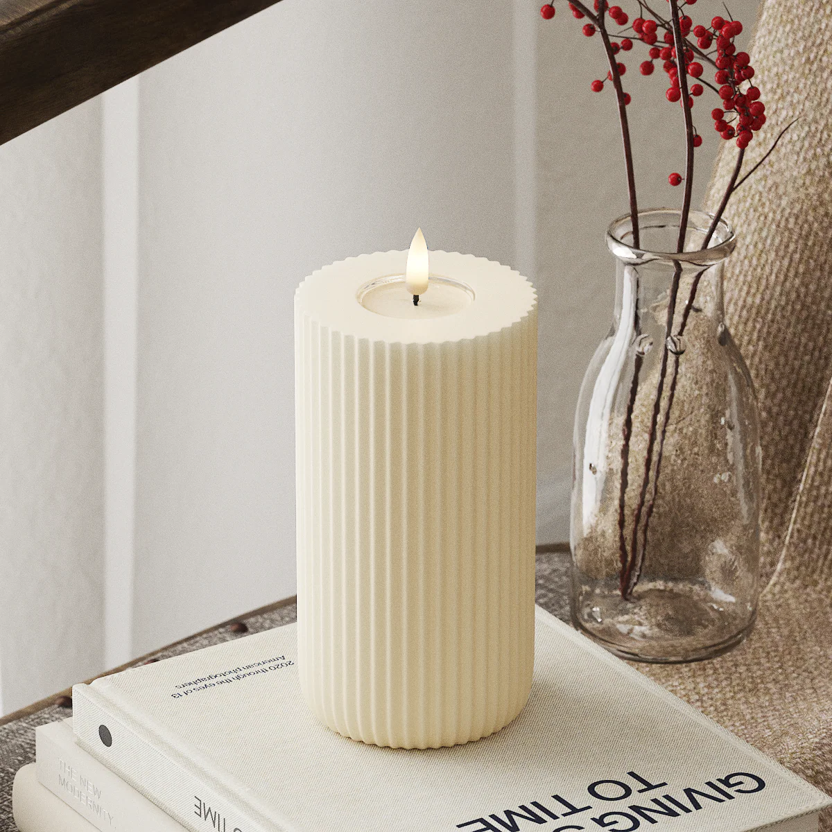 LED-rillelys fra Deluxe Homeart skaber en fortryllende atmosfære, uanset hvor du placerer dem. Hvis du foretrækker en moderne twist frem for traditionelle LED-stearinlys, så er vores LED-rillelys måske lige noget for dig. Disse smukke LED-stearinlys er formet som kogler og har elegante riller langs hele lyset, der tilføjer et unikt touch til din indretning.