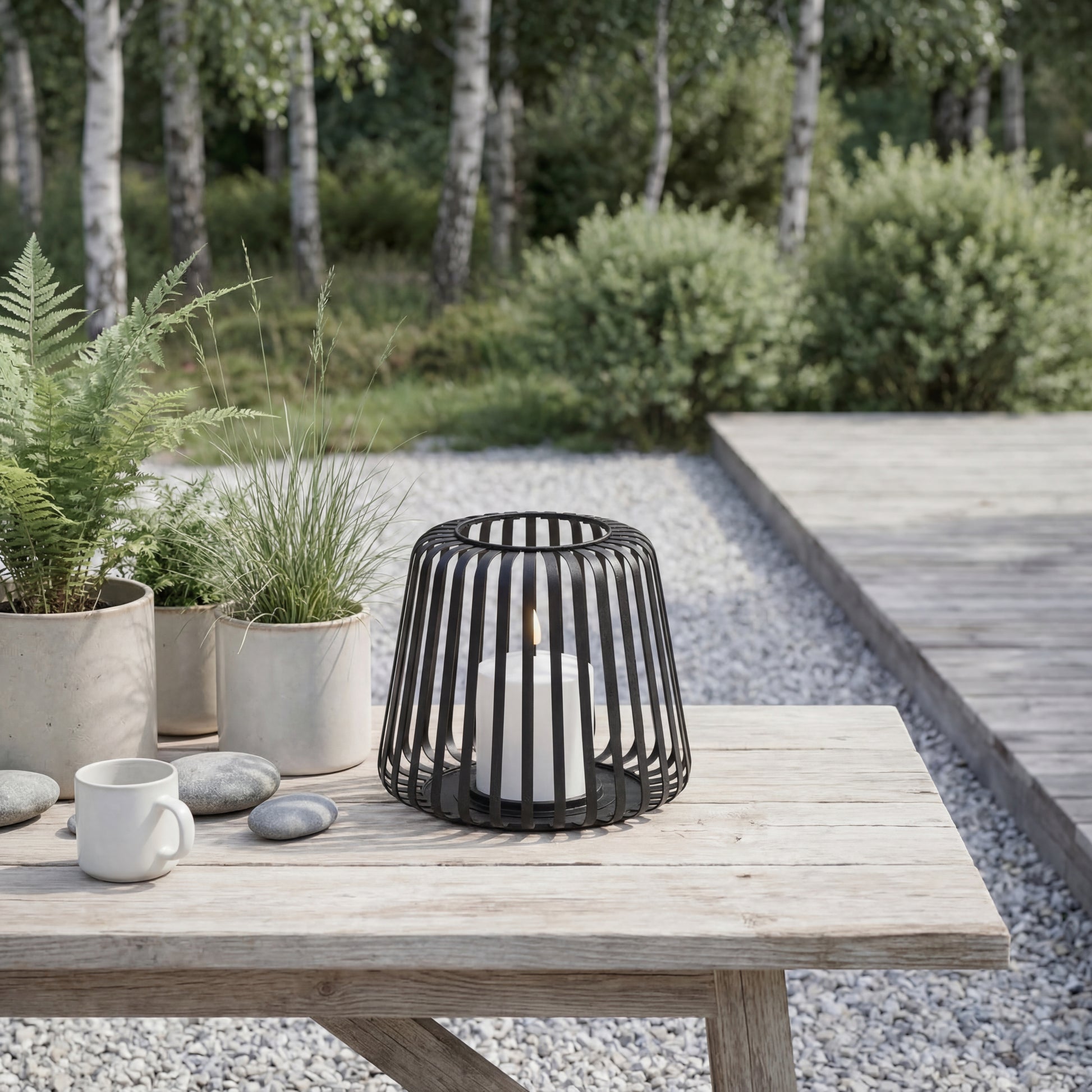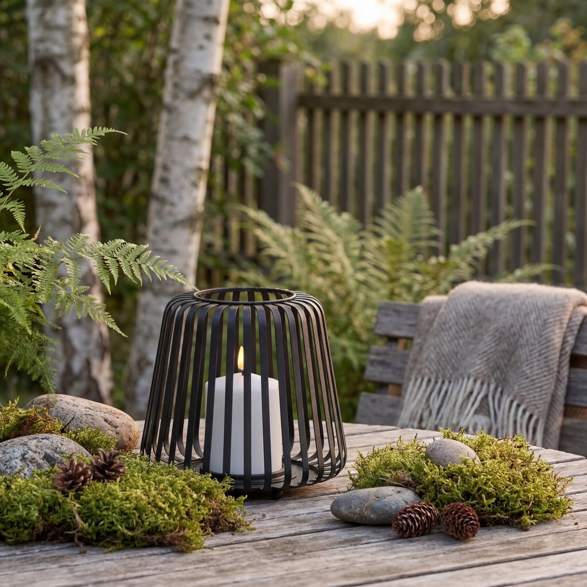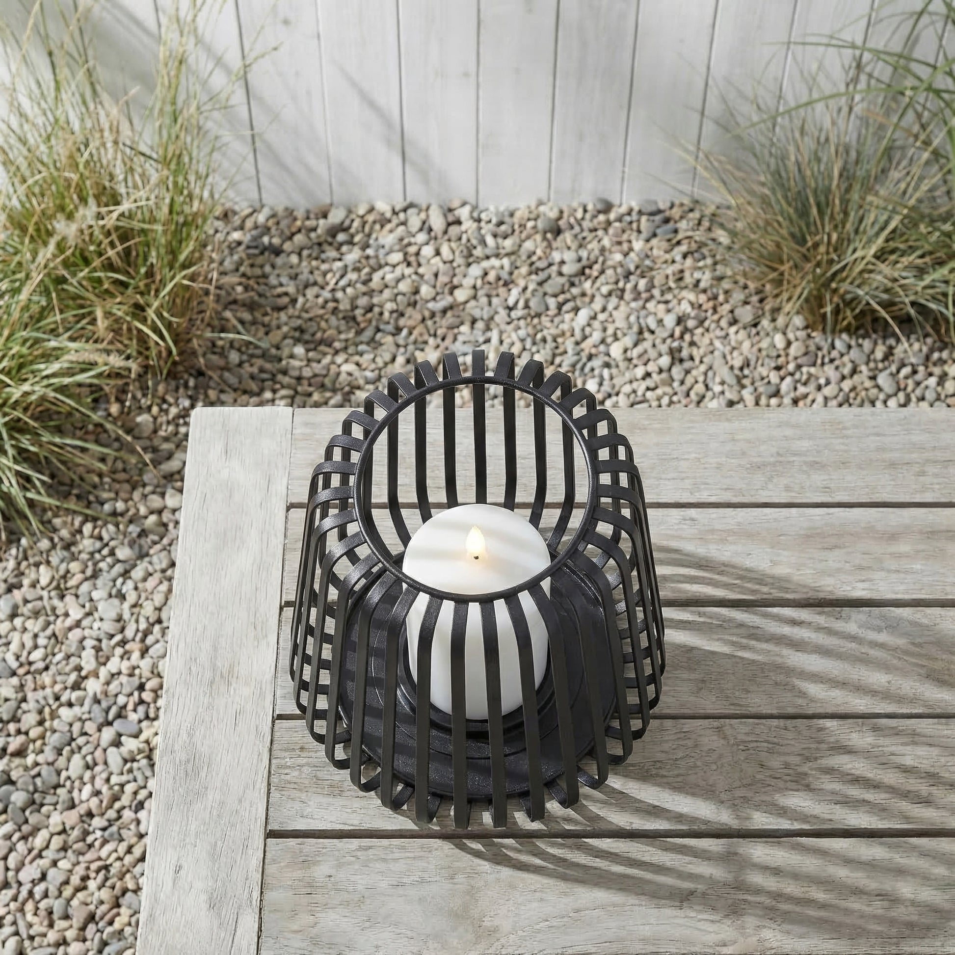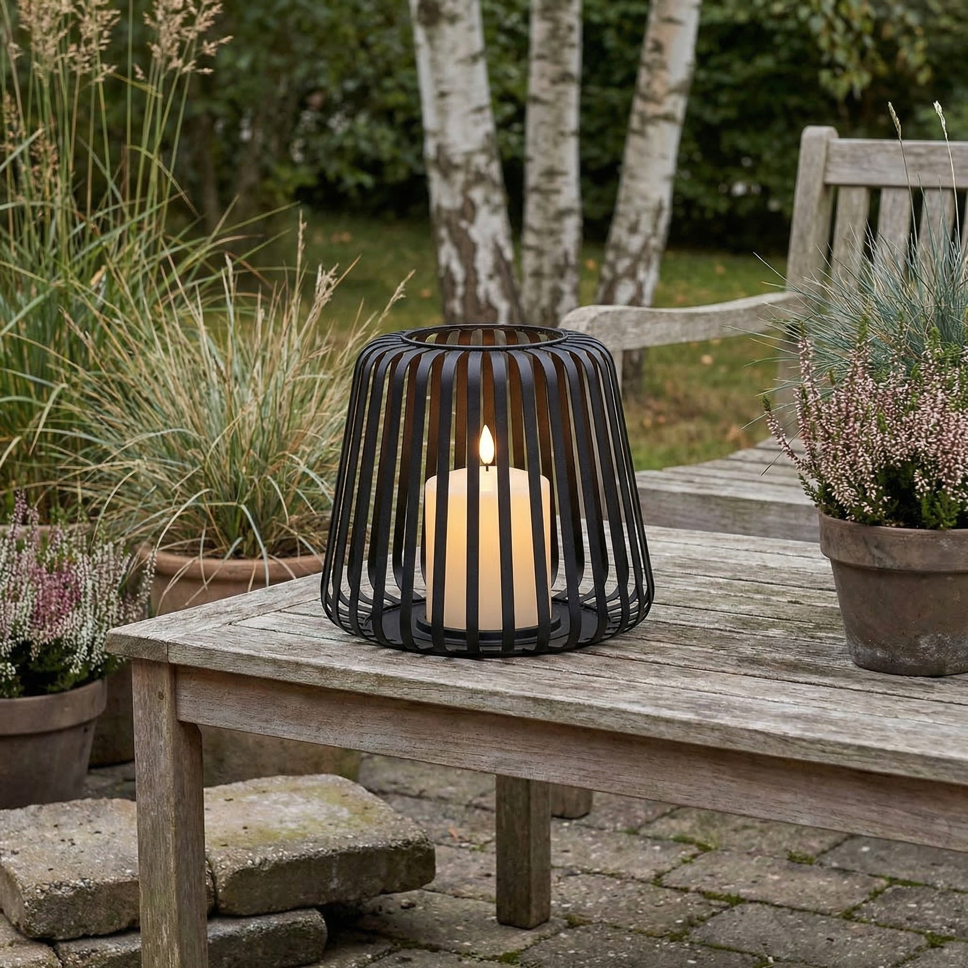 Lanterner kommer komplet med et integreret LED-bloklys i ægte voks, der afgiver et varmt, realistisk flimrende lys – helt uden åben ild og uden bekymringer om vind og vejr. Det solide metalstel giver en tidløs og dekorativ ramme om lyset, der passer perfekt til skandinavisk stil.