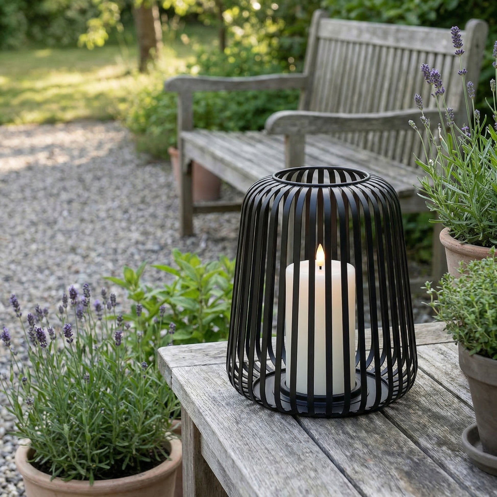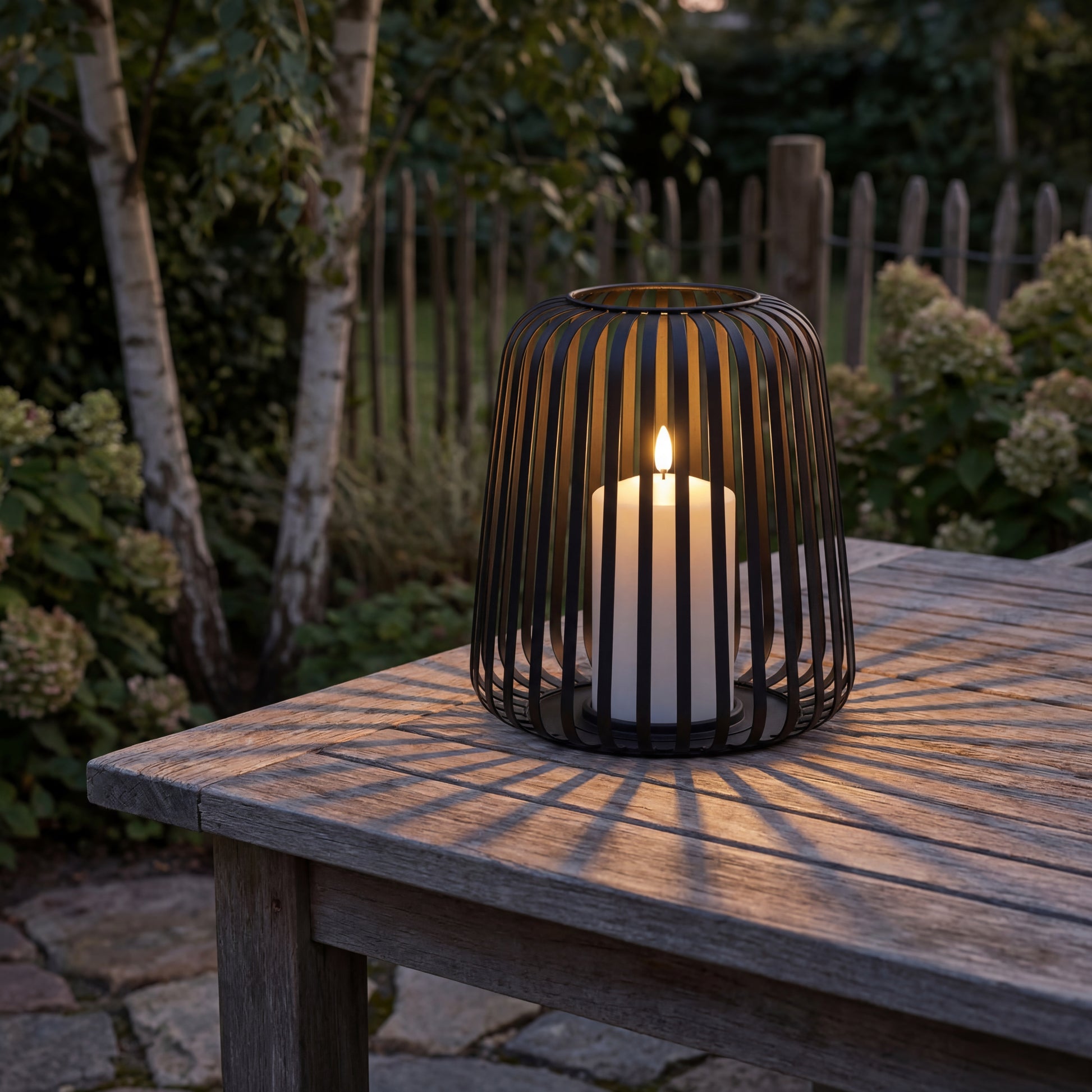 Lanterner kommer komplet med et integreret LED-bloklys i ægte voks, der afgiver et varmt, realistisk flimrende lys – helt uden åben ild og uden bekymringer om vind og vejr. Det solide metalstel giver en tidløs og dekorativ ramme om lyset, der passer perfekt til skandinavisk stil.