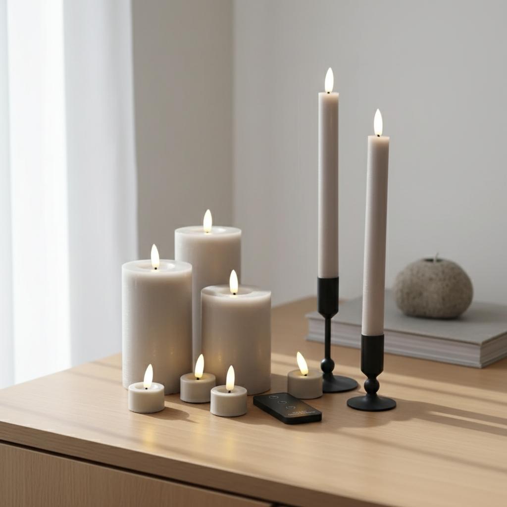 Stort LED-stearinlyssæt med 9 lys og fjernbetjening - Grå
