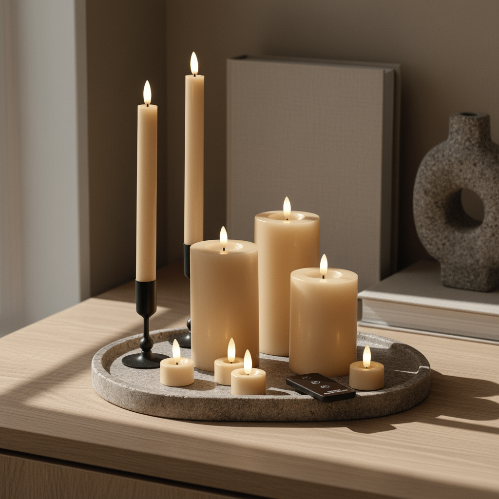 Stort LED-stearinlyssæt med 9 lys og fjernbetjening - Sand