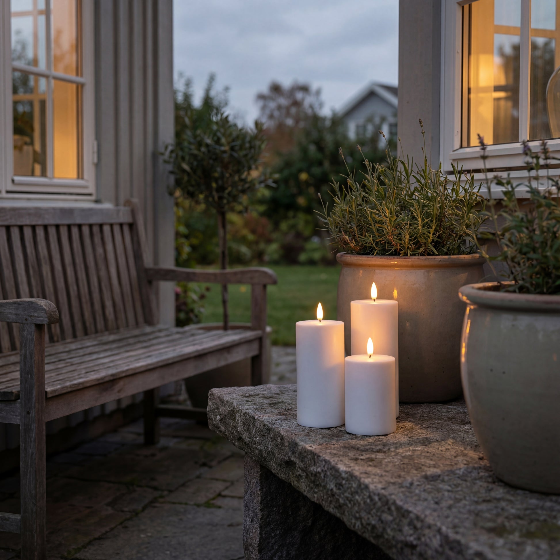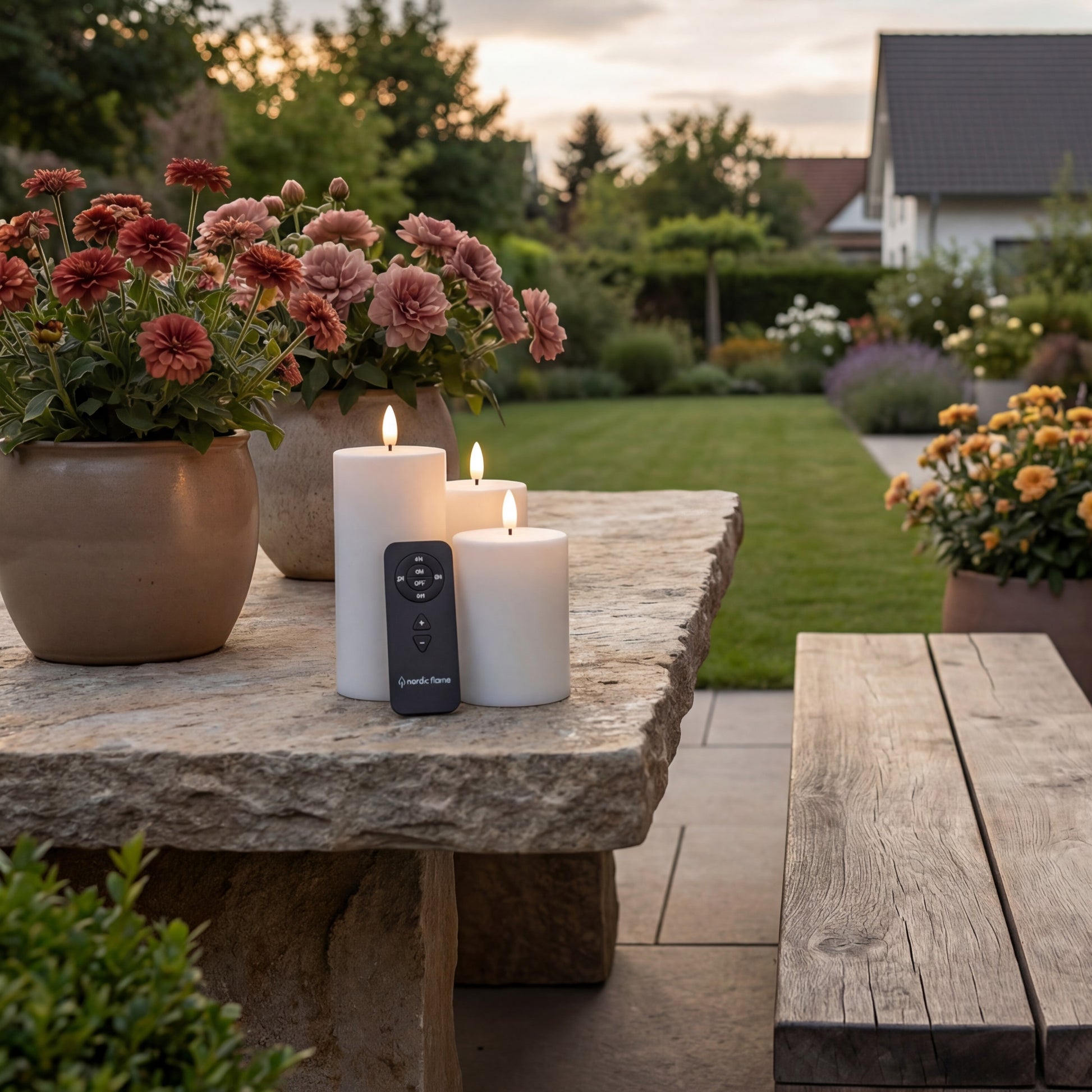 Skab en smuk, stemningsfuld og vedligeholdelsesfri belysning udendørs med dette sæt af 3 eksklusive LED-bloklys fra Nordic Flame, designet til altan, terrasse, have og indgangsparti. Lysenes naturtro flamme, robuste konstruktion og lange batteritid gør dem til den perfekte løsning til hygge året rundt.