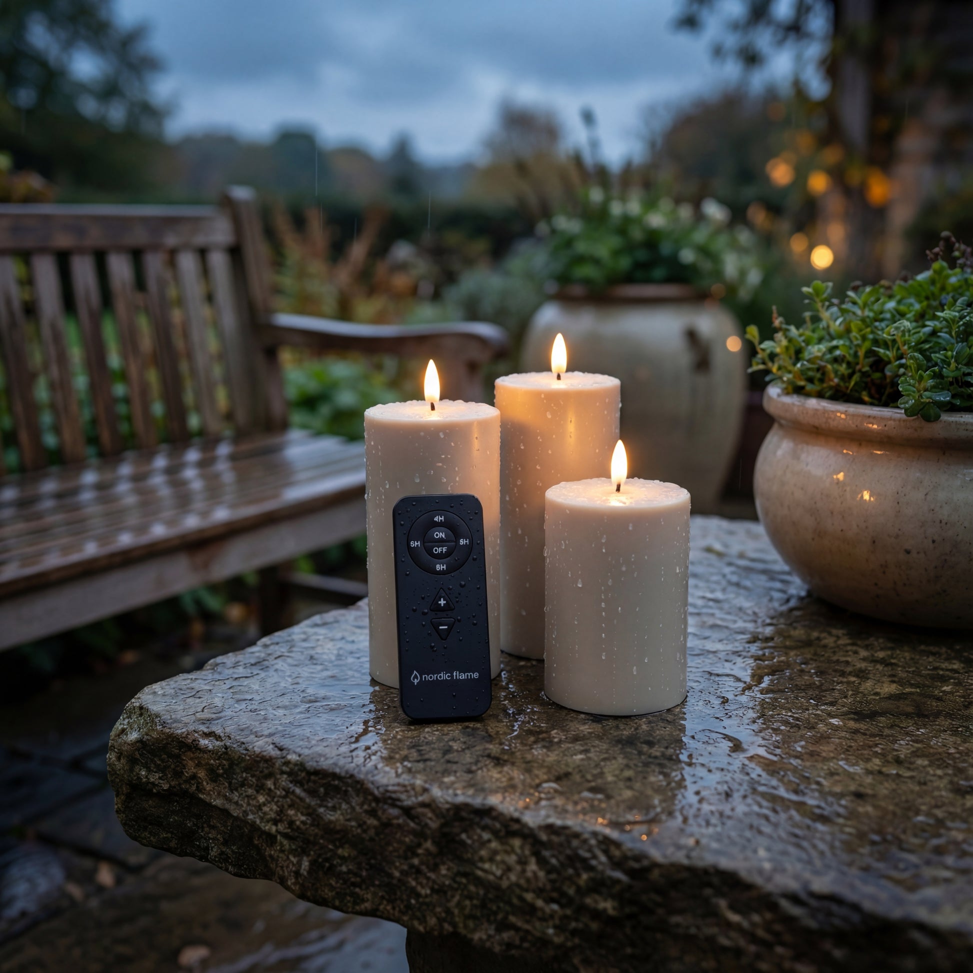 Udendørs LED-lys – Nordic Flame 3-pak med fjernbetjening
